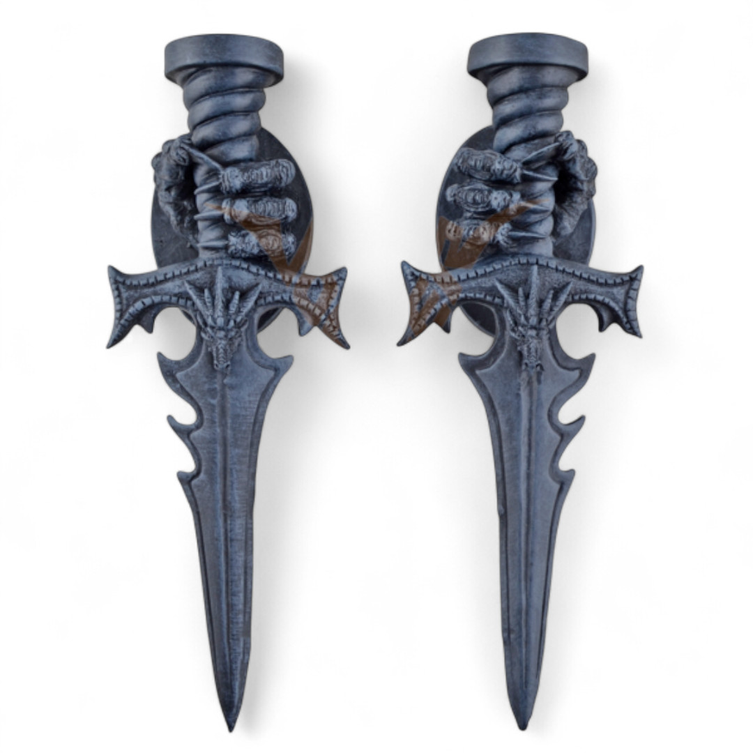 Kerzenhalter in Dolchform gehalten von Drachenhänden