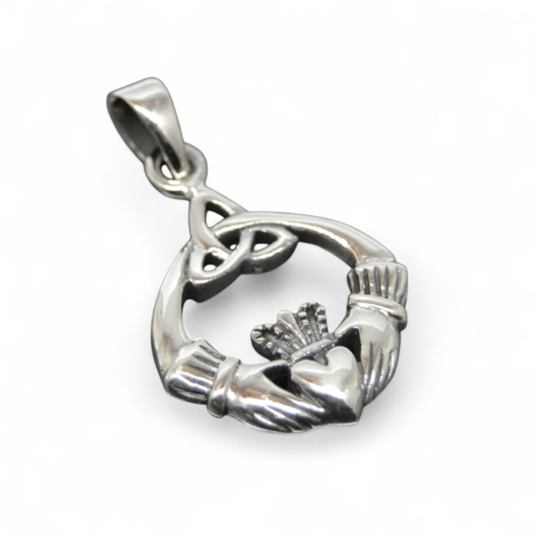 Anhänger mit dem Irischen Claddagh und einem Keltischen Knoten als Motiv