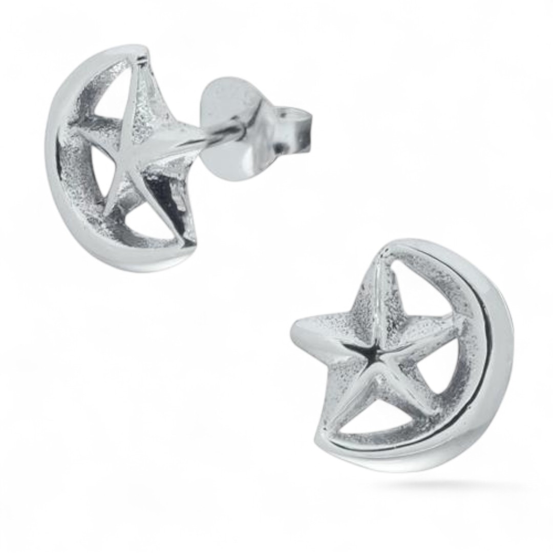 Silberner Ohrstecker im Mond und Stern Design