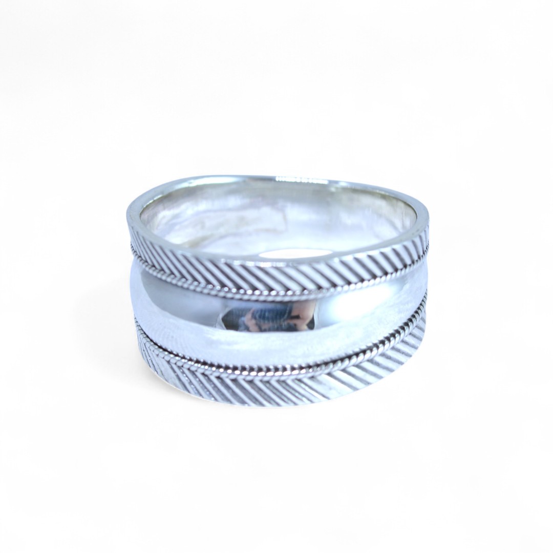 Ring aus 925er Silber mit geriffeltem Rand.