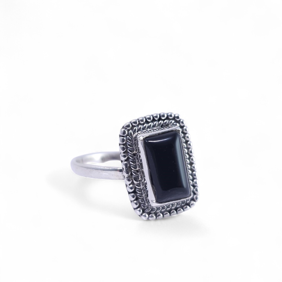 925 Silber Ring rechteckiger Stein ”Onyx”