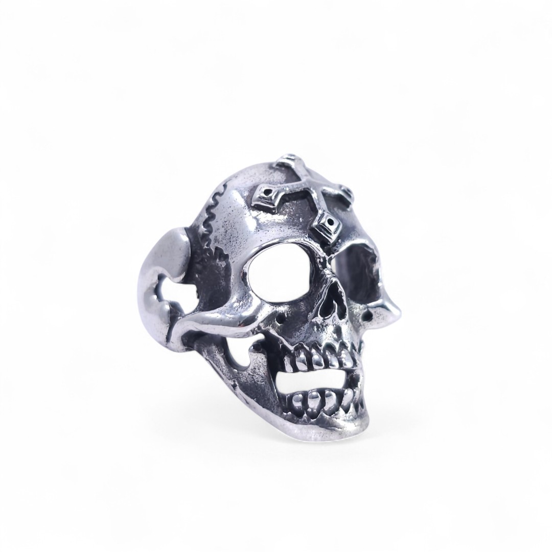 Ring aus 925er Sterling Silber in Form eines Totekopf mit Kreuz