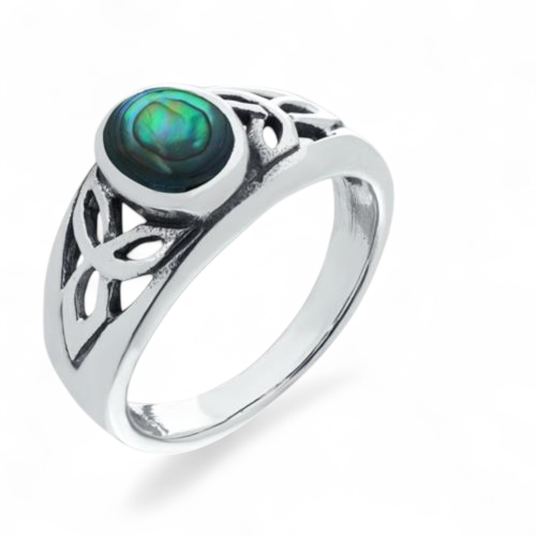 Silberring mit Triquetta Ornamenten und ovalem Türkis