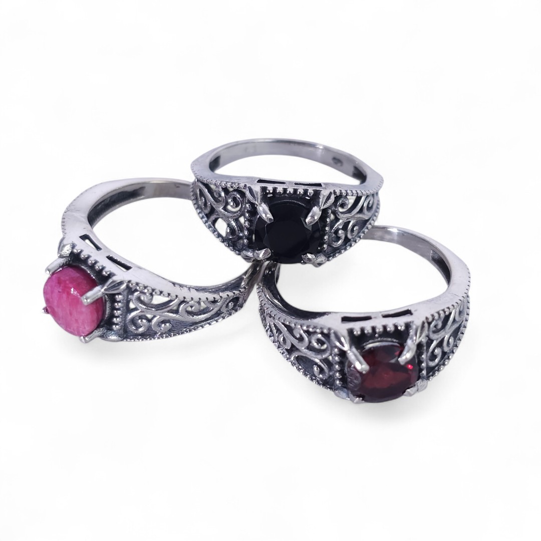 925er Silber Ring mit gefaßtem Stein im viktorianischen Design.