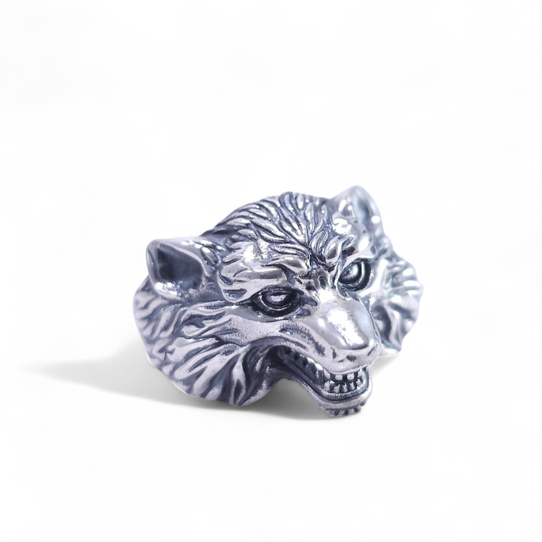 925er Silberring in Wolfsform.