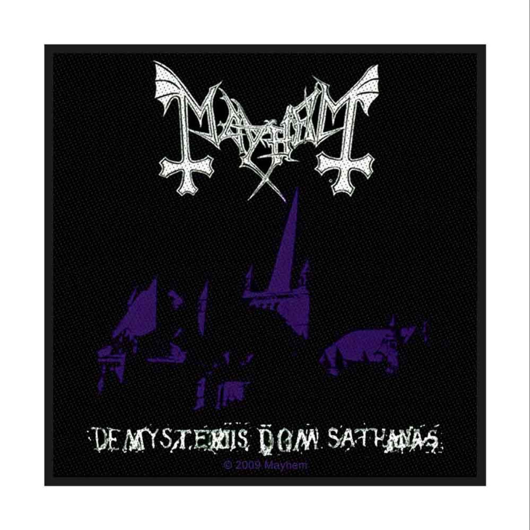 Offiziell lizensiertes Band-Patch der Band Mayhem mit dem Motiv "De Mysteriis Dom Sathanas".