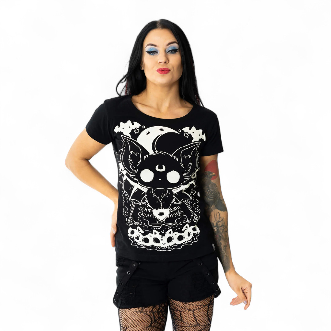-Katze und Ouija-Schädel Motiv auf der Vorderseite
