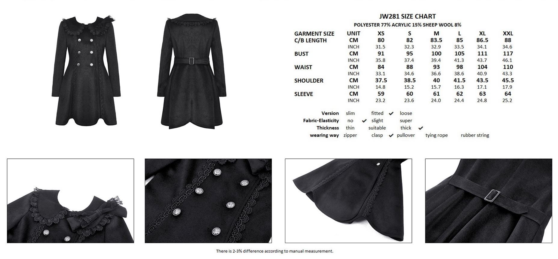 niedlicher Mantel im Gothic-Look mit Schafswolle