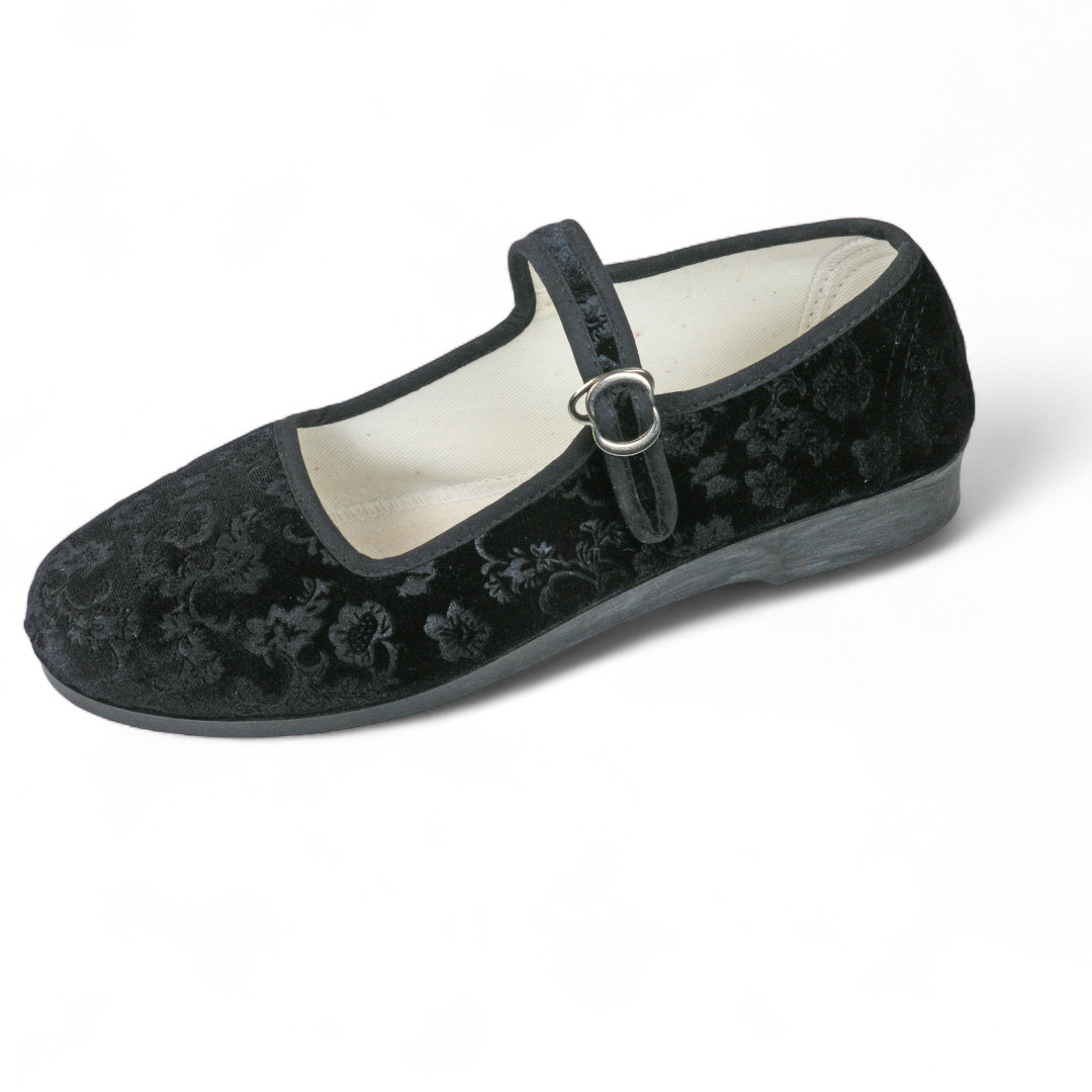 Ballerinas aus Samt, mit Riemchen zum Schließen