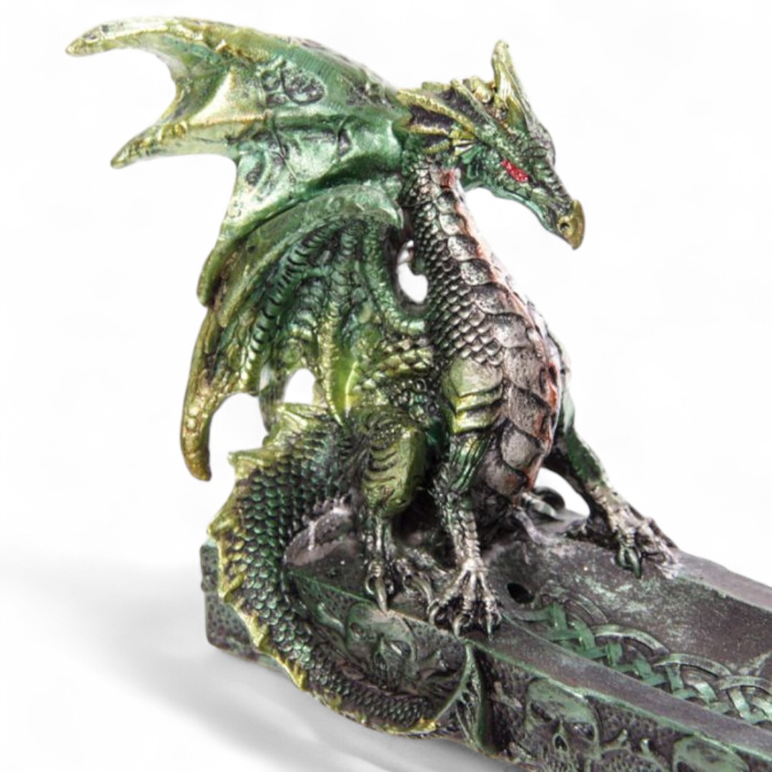 Dekorativer Räucherbrenner mit schimmerndem Drachen.