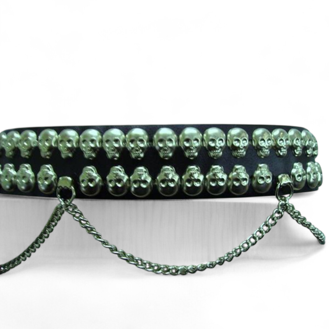 Echtledergürtel mit Totenkopfnieten & Ketten 2-Reihig.