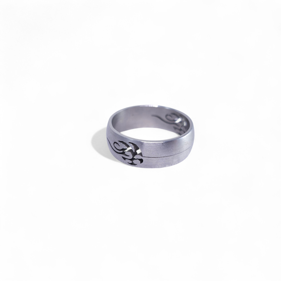 Edelstahlring mit gefrästem Tribal