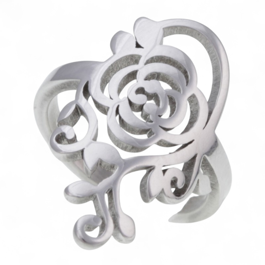 Edelstahl Ring mit Rose.