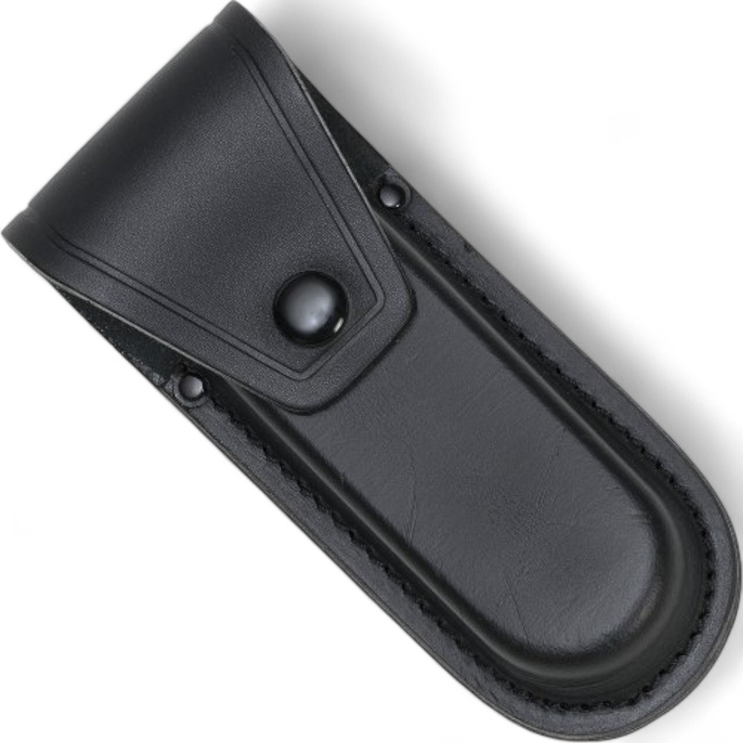 Ein wertiges Lederetui mit praktischem Druckknopfverschluss.