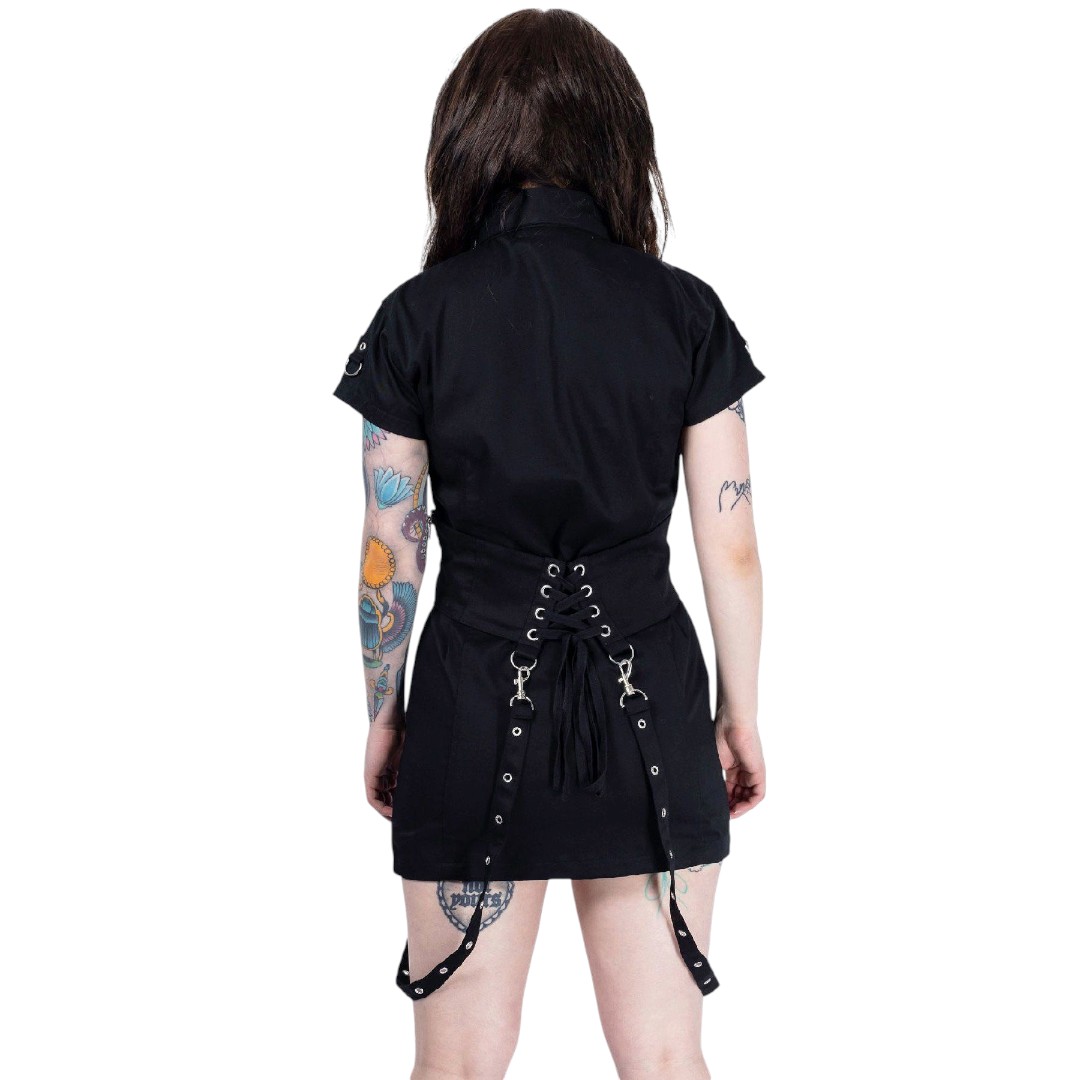 Uniform-Kleid mit Hüftgürtel und Bändern