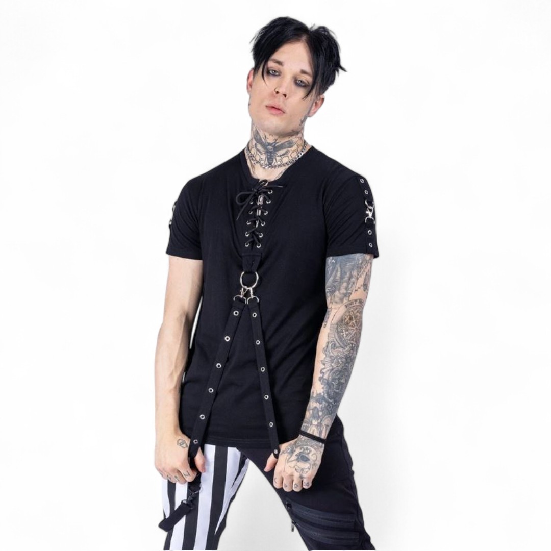 Shirt mit hängenden ''Trägern''.