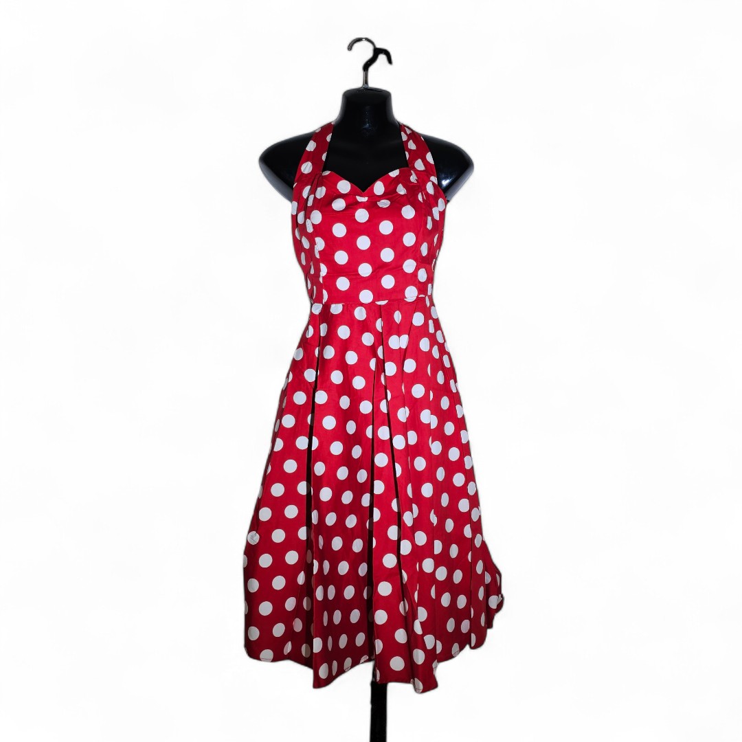 Neckholder Kleid mit rotem Polka-Dot-Design