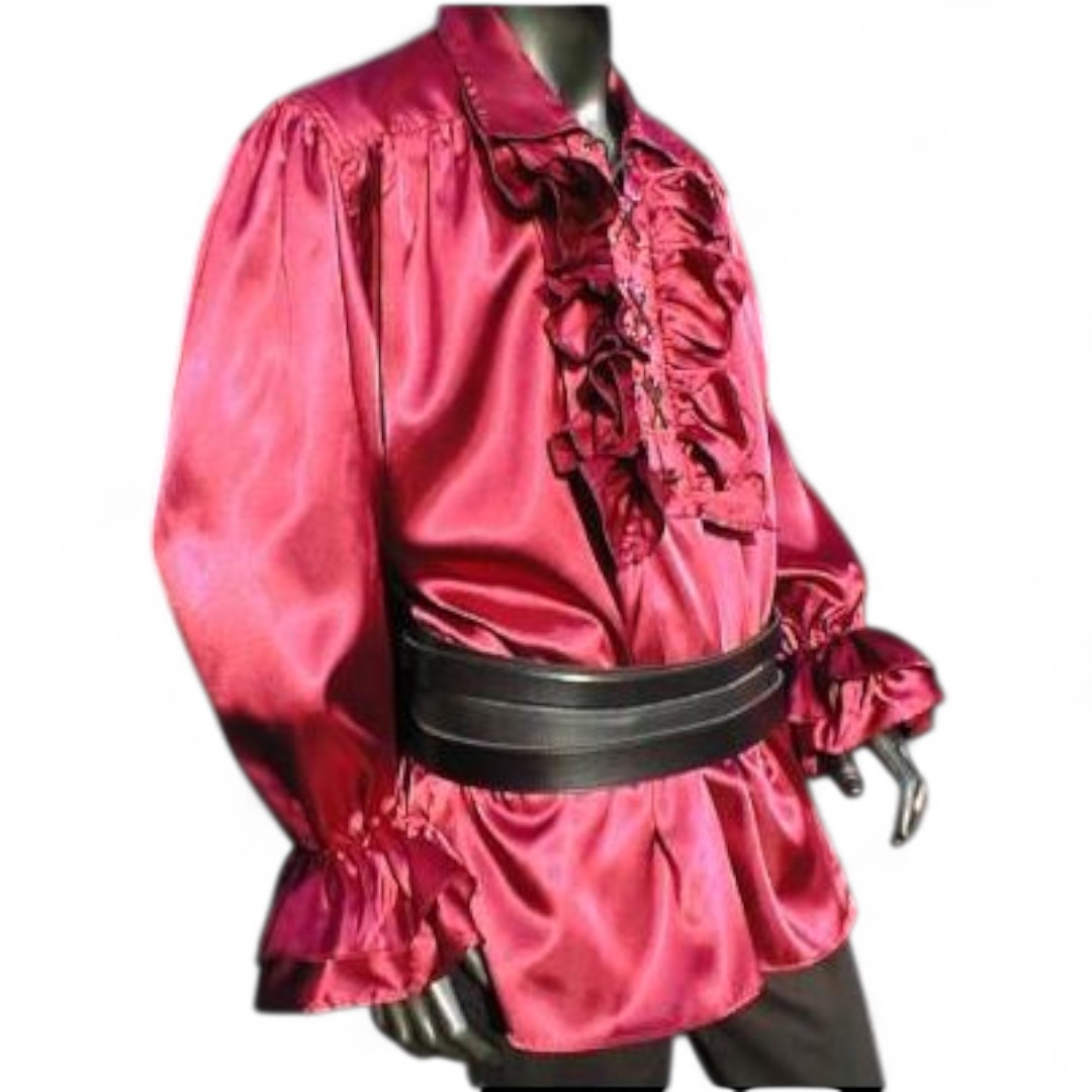 Satin-Hemd mit geschnürrtem Kragen und Rüschendetails an Ärmeln und Kragen