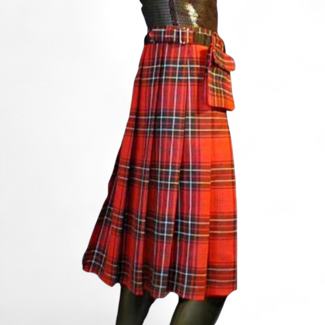 Authentischer Rot-Grün karierter, klassisch geschnittener Kilt mit praktischem Gürtel und Tasche