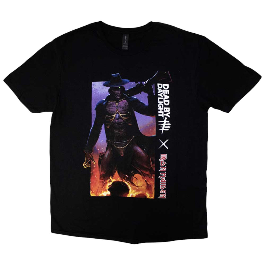 Ein offiziell lizenziertes Iron Maiden-Unisex-T-Shirt mit dem Designmotiv „Dead By Daylight Gunslinger“.