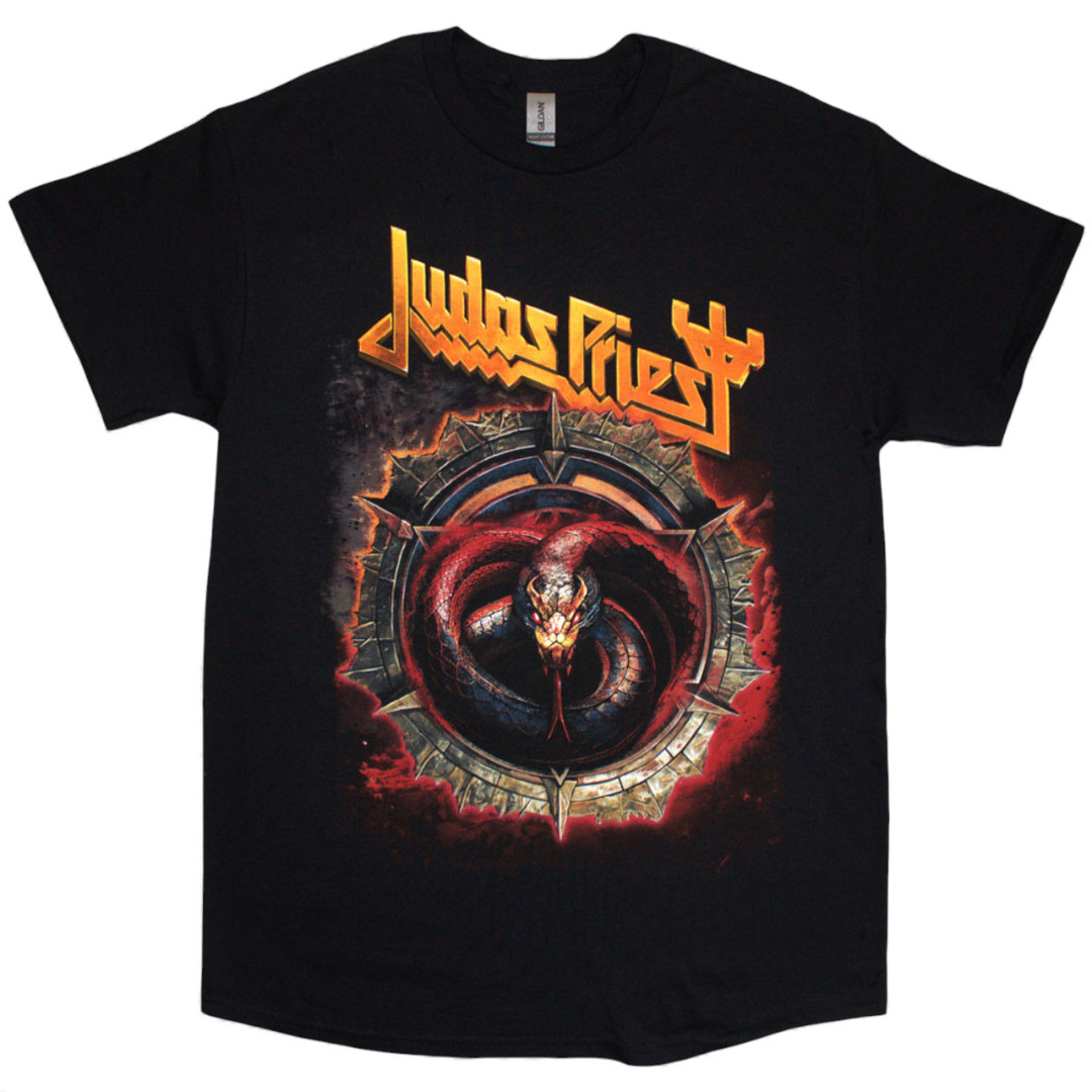 Ein offiziell lizenziertes Judas Priest-T-Shirt mit dem Designmotiv „The Serpent“.