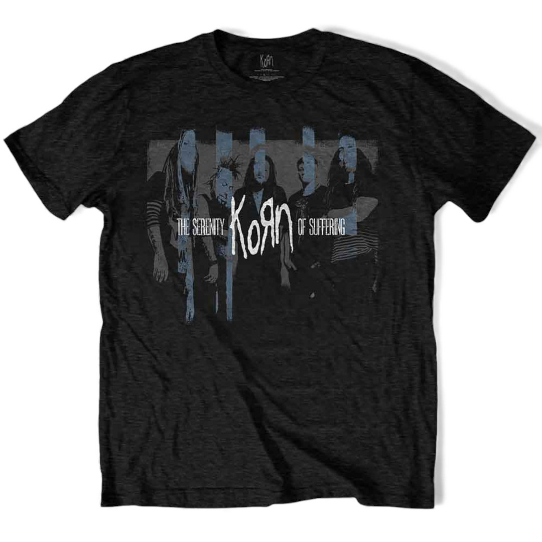 Ein offiziell lizenziertes Korn-Unisex-T-Shirt mit dem Designmotiv „Block Photo”