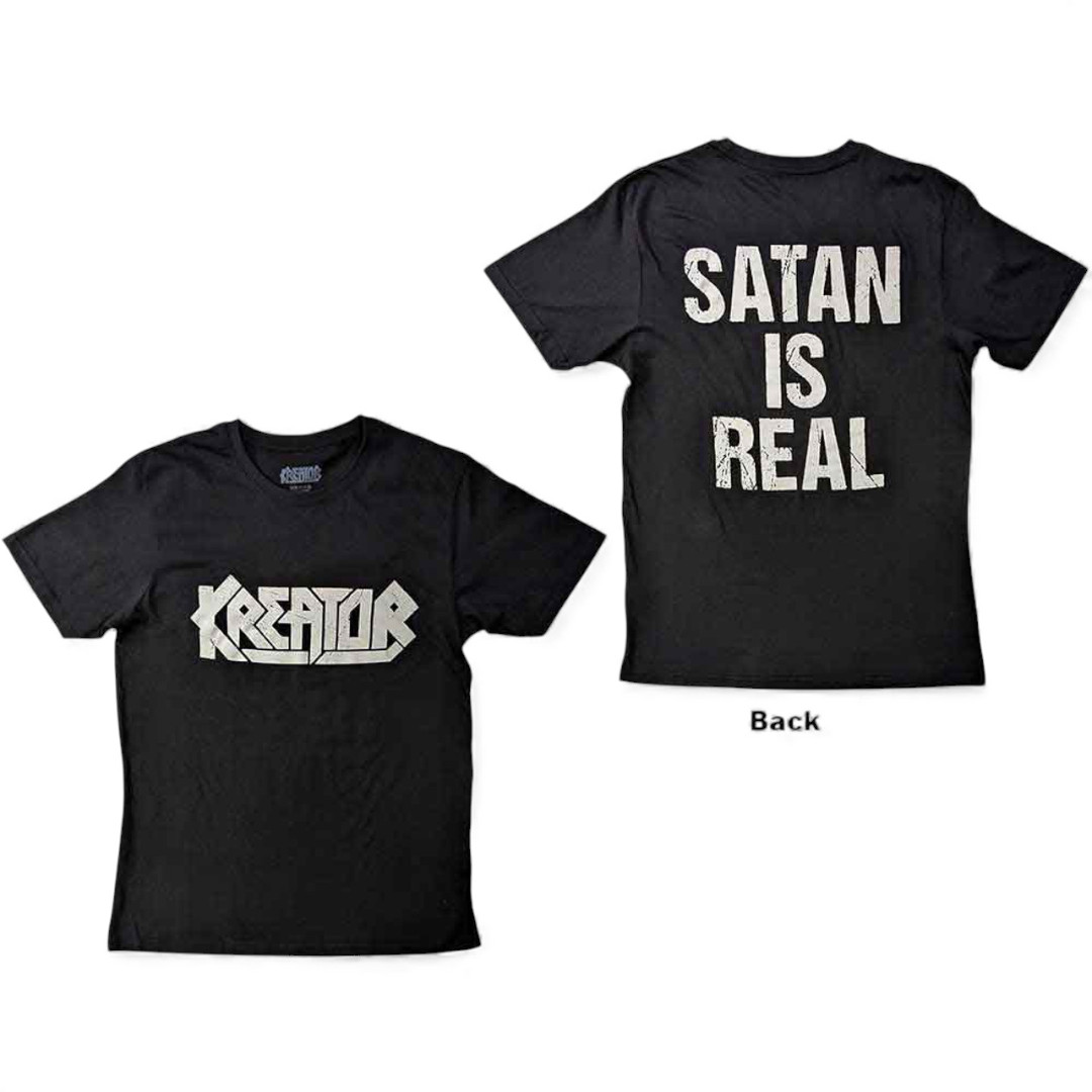 Ein offiziell lizenziertes Kreator-Unisex-T-Shirt mit dem Designmotiv „Satan Is Real”