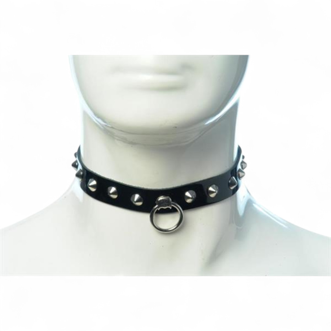 Lacklederhalsband mit Spitznieten und O-Ring