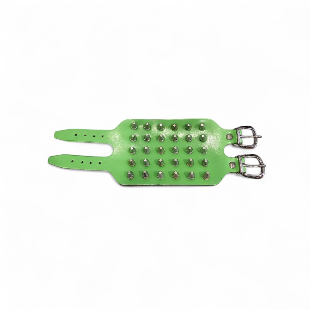 Neongrünes Lederarmband mit 5 Reihen abgeflachten Killernieten