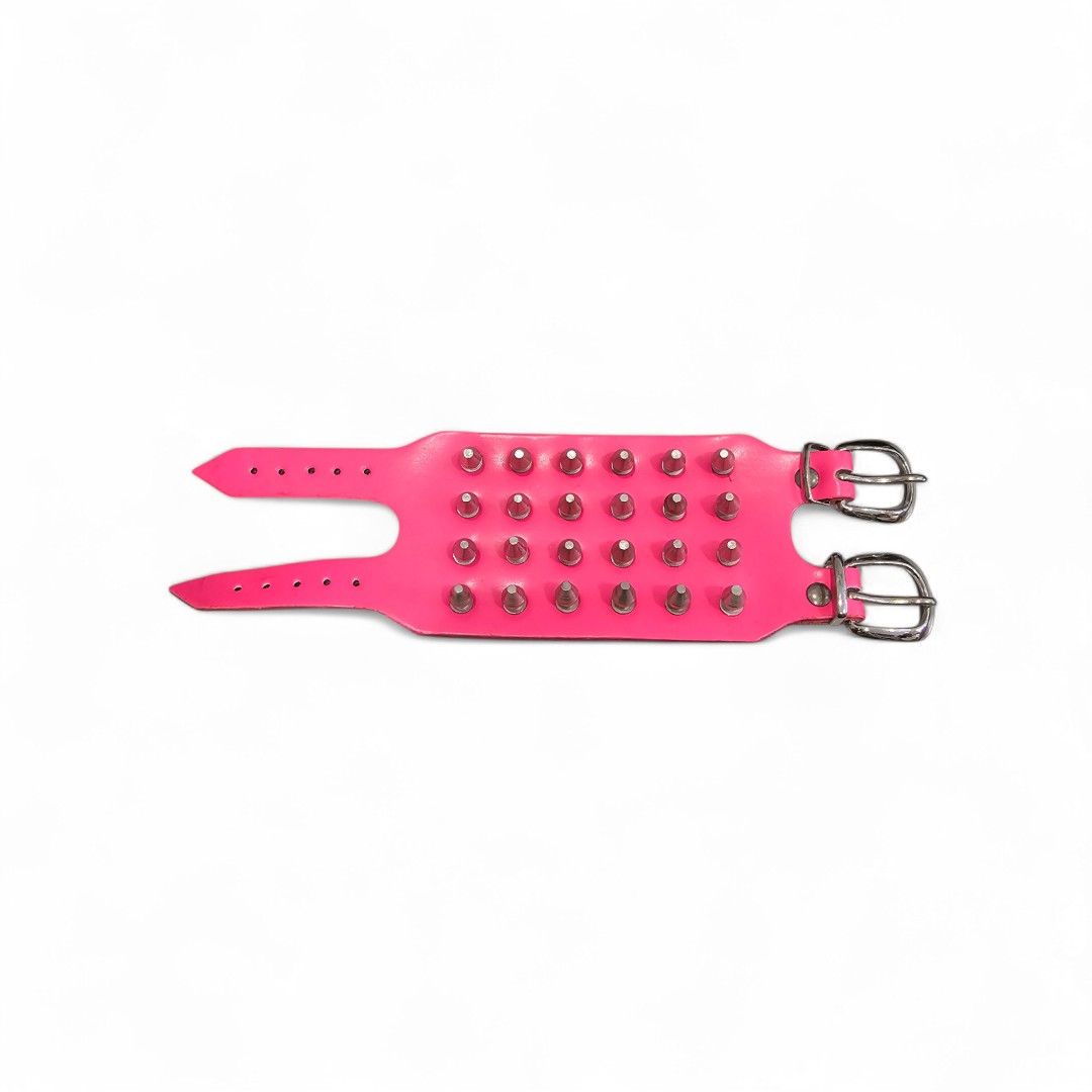 Neonpinkes Lederarmband mit 4 Reihen abgeflachten Spitznieten