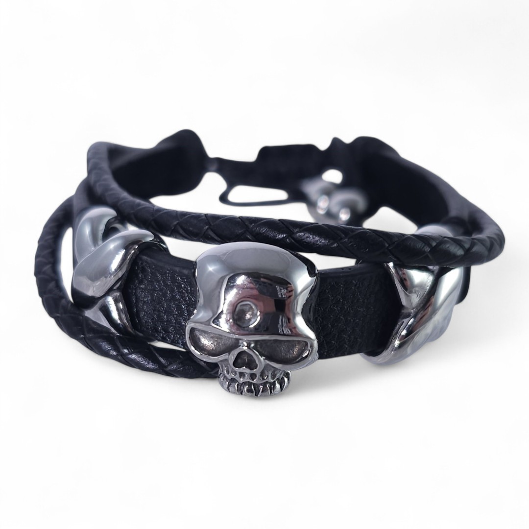 Lederarmband mit einem Totenkopf und Knotenähnliche Deatils.