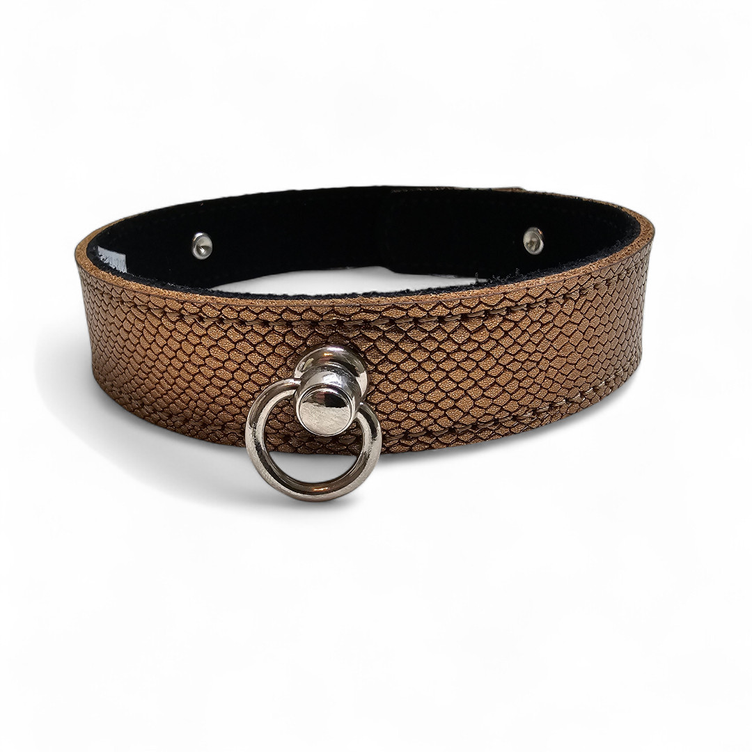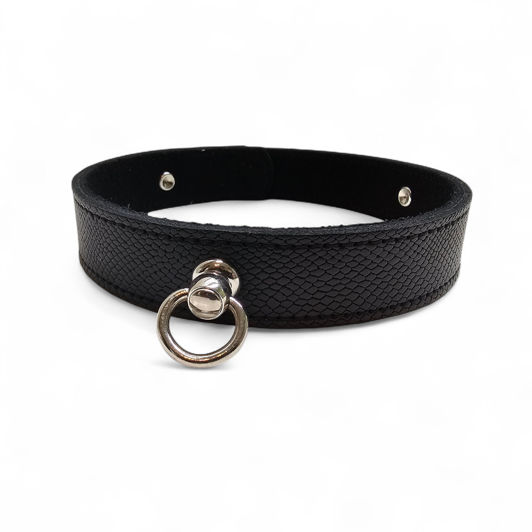Handgefertigtes Echtleder Halsband in Schlangenoptik mit O-Ring