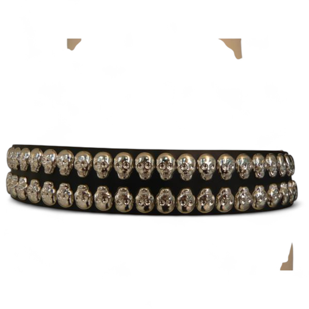 Zweireihiger Totenkopfnieten-Gürtel aus Echtleder.