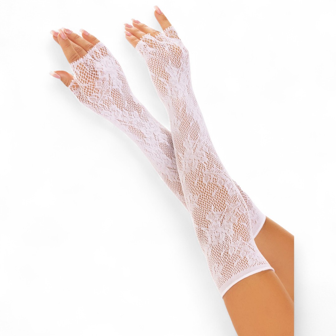 Entdecke die zeitlose Eleganz dieser fingerlosen Spitzenhandschuhe.
