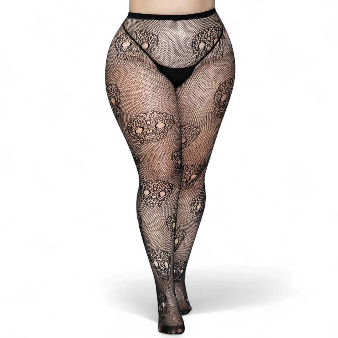 Netzstrumpfhose mit Spitzen-Totenköpfen
