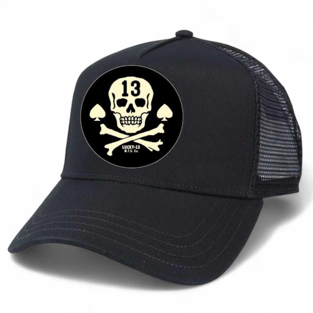 Trucker-Cap von Lucky 13 mit ''Pirate Skull'' Stickerei