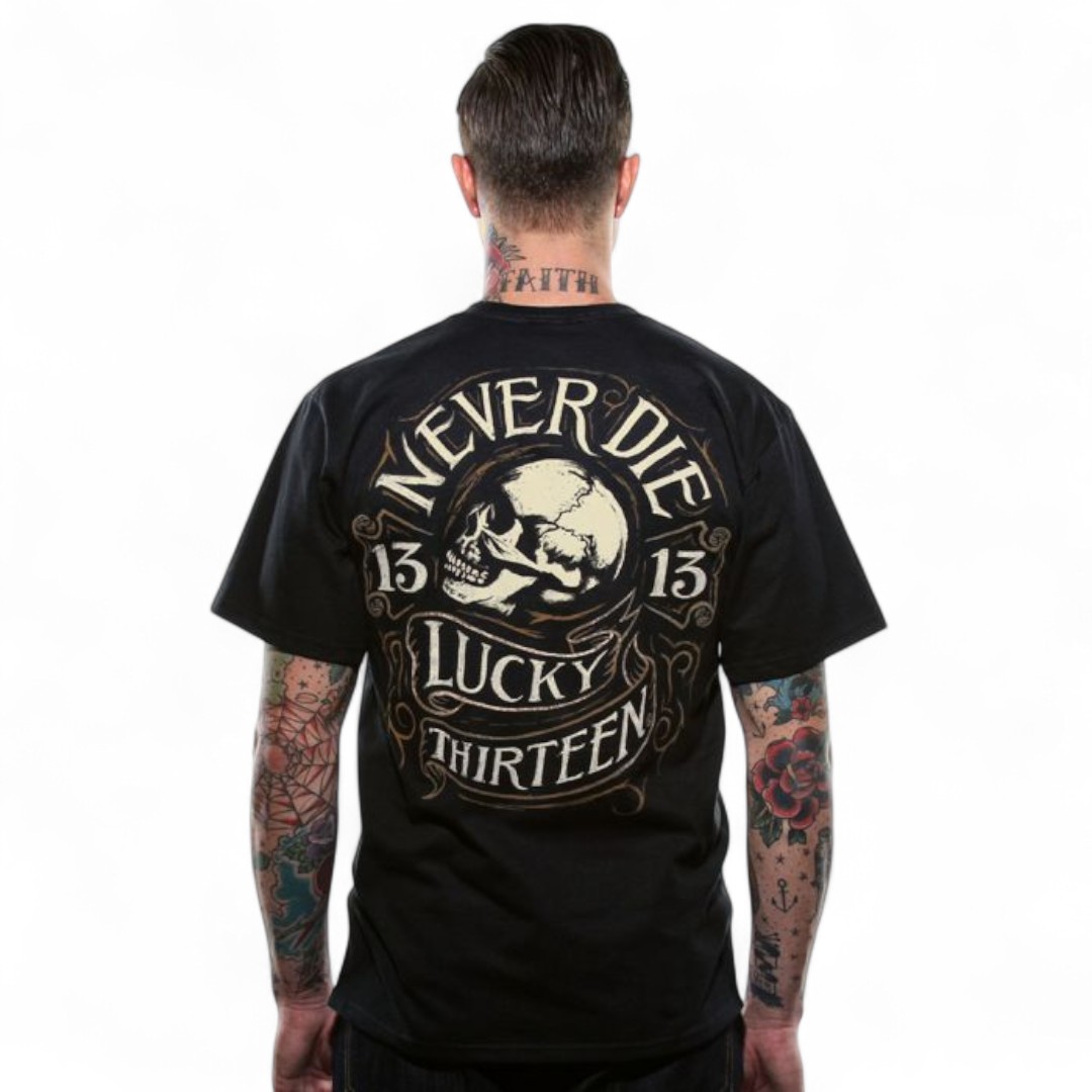 T-Shirt welches beiden Seiten bedruckt ist im Rockabilly-Look.