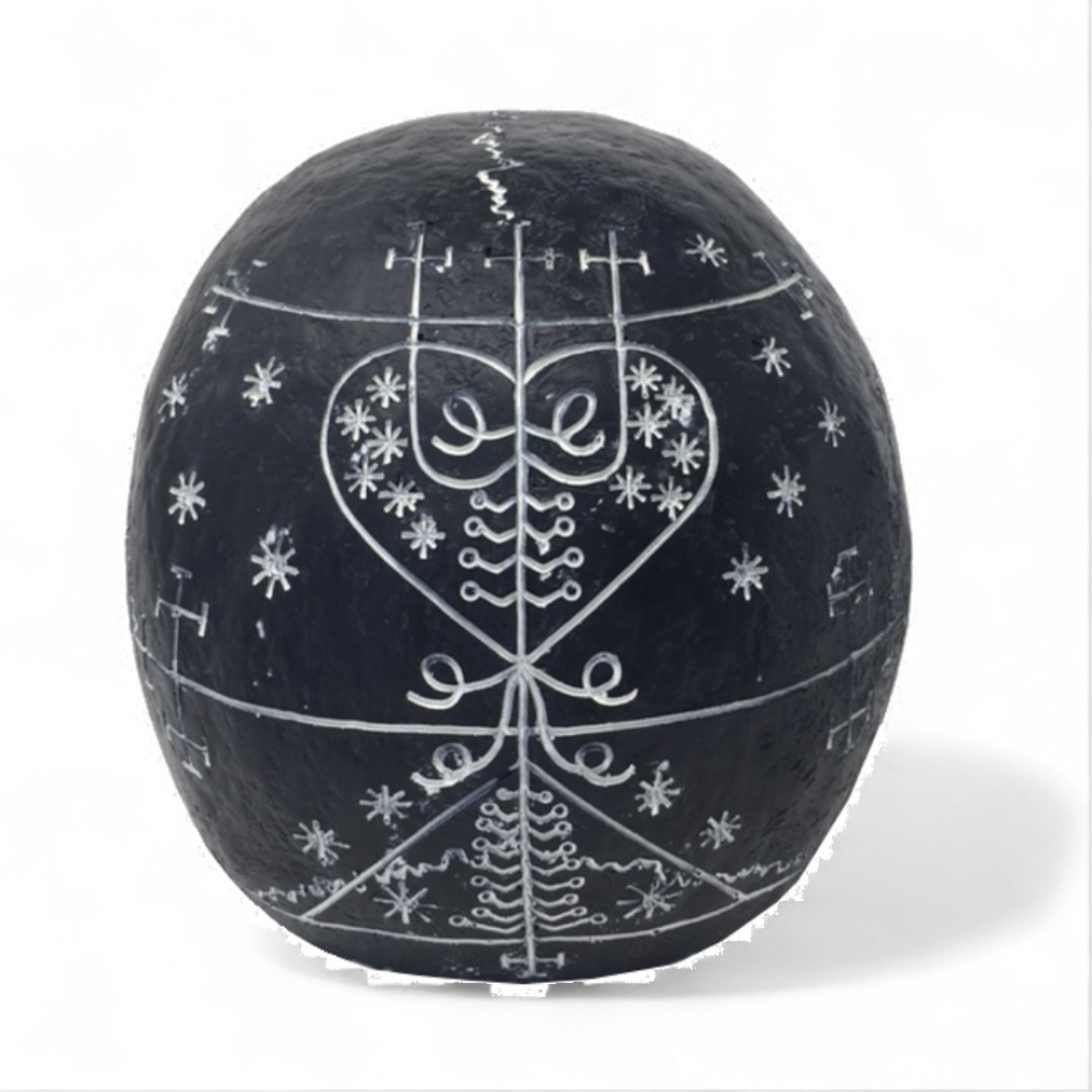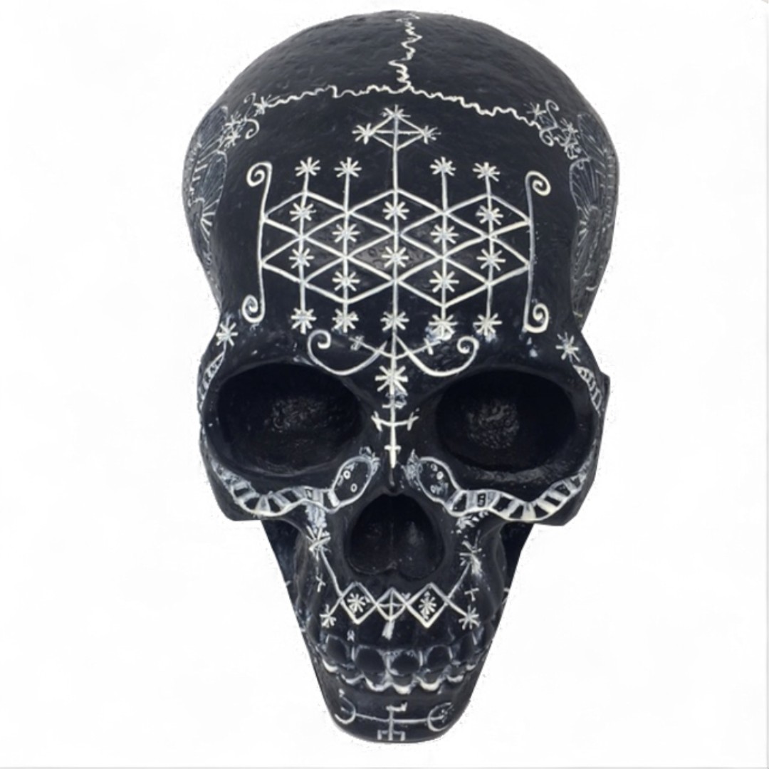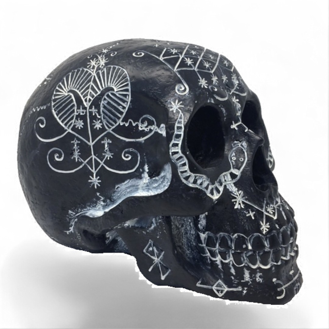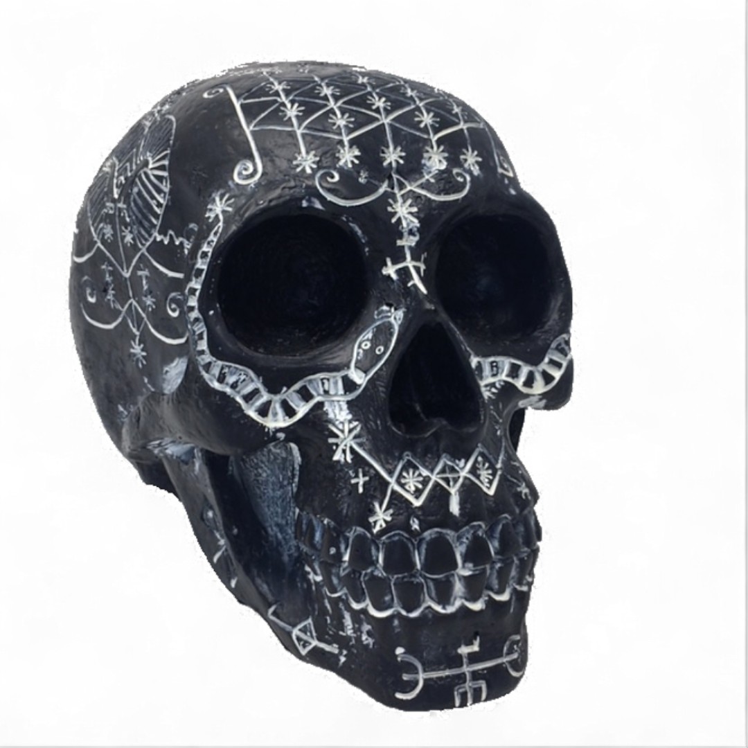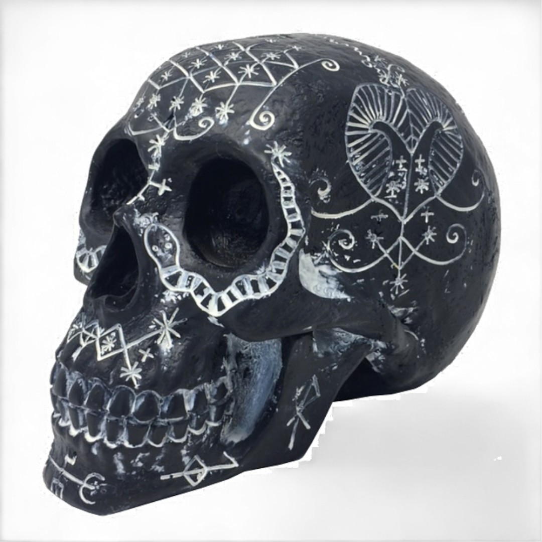 Totenkopf mit schwarz-weißem okkultem Design