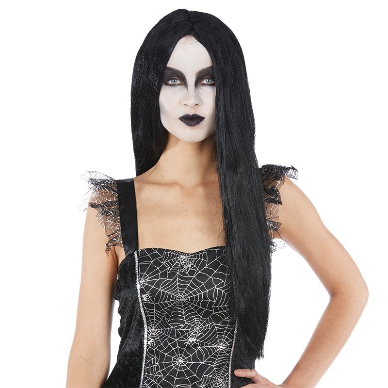 lange schwarze Perücke