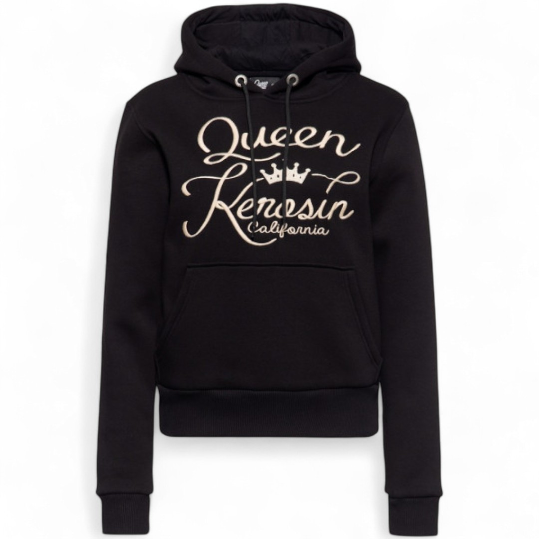 Ein schlichter Basic Kapuzenpullover welcher durch die kontrastierende plakative und hochwertige Stickerei auf der Vorderseite sofort ins Auge sticht.