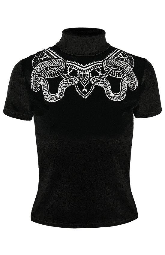 -Vorderseite verziert mit auffälliger Stickerei von zwei Schlangen, die von Ornamenten umgeben sind.