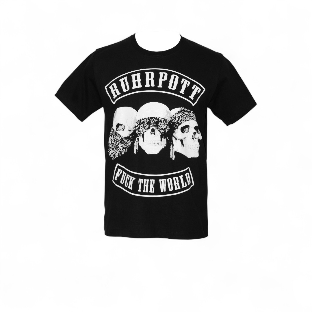 Ruhrpott Shirt. Motiv: 3 Schädel mit Bandanas + Schriftzug “F*ck the World”