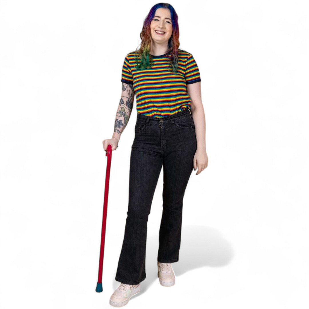 Hol dir das 70er-Jahre-Feeling mit unseren wunderschönen hoch taillierten Bell-Bottom-Jeans im 70er-Jahre-Stil aus schwarzem