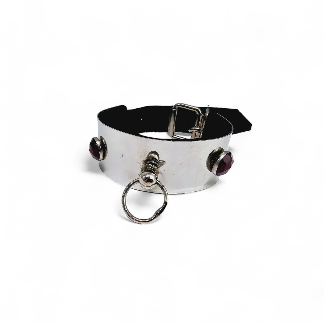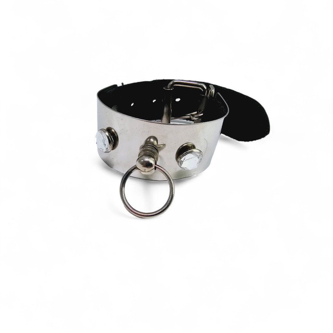 Handfesseln aus Metall, verziert mit zwei Steinchen und O-Ring