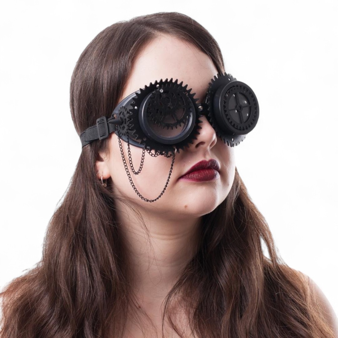 Außergewöhnliche Brille mit Zahnrädern im Steampunk Design.
