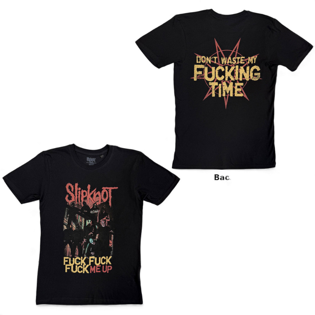 Ein offiziell lizenziertes Slipknot-Unisex-T-Shirt mit dem Designmotiv „Fuck Me Up“. Dieses hochwertige T-Shirt ist in der Farbe Schwarz erhältlich.