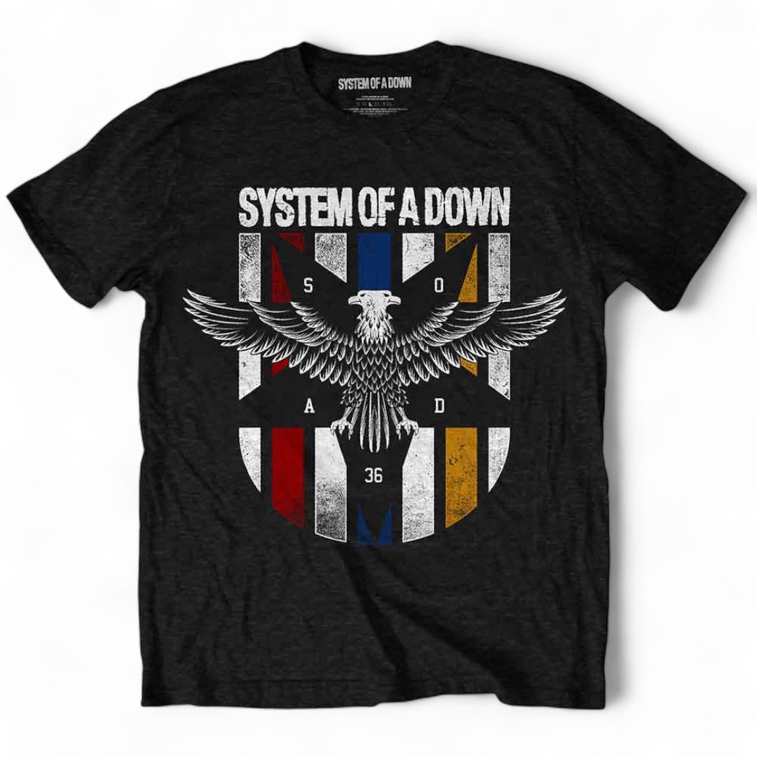 Ein offiziell lizenziertes System Of A Down Unisex-T-Shirt mit dem Designmotiv „Eagle Colours“.