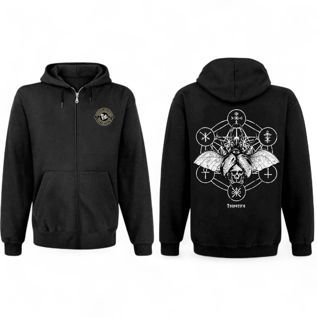 "Beetle of Death" Zip-Hoodie mit durchgehendem und abgedecktem Reißverschluss