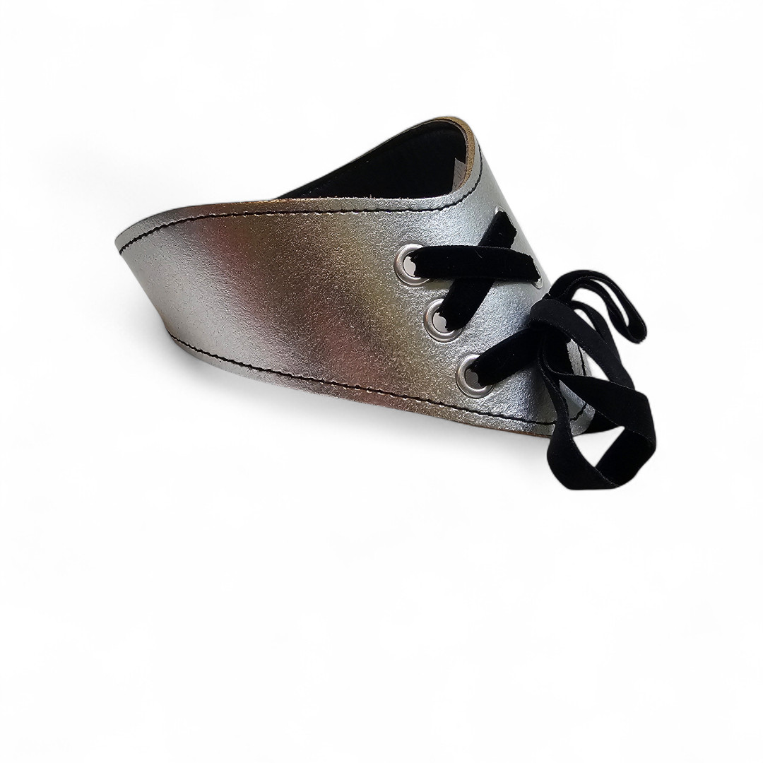 V-Neck Lederchoker mit einer korsagenähnlichen Schnürung vorne. Schließe über Druckknopf