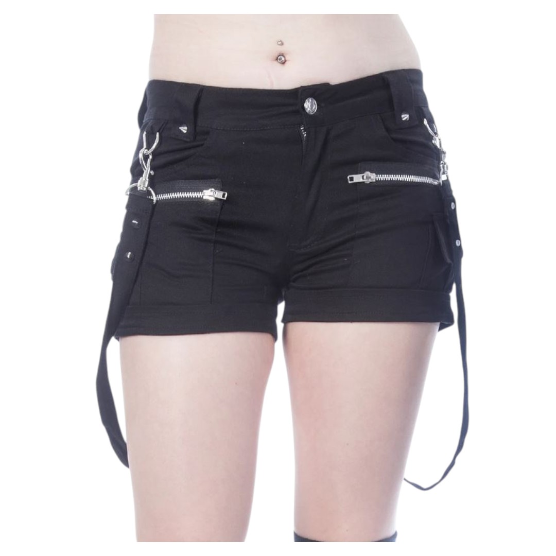 Kurze Hotpant mit zwei Bändern und Reißverschlüssen
